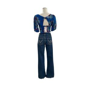 Band Of The Free Floral Smocked Crop Top Puff Sleeve Open Back Boho Y2K Retro