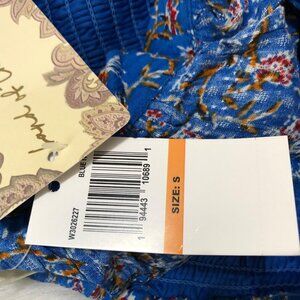 Band Of The Free Women's Blue Floral Smocked Crop Top Size Small NWT