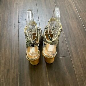 Band Of The Gypsies Animal Print Vegan Leather Ankle Strap Sandal Heels Size 8