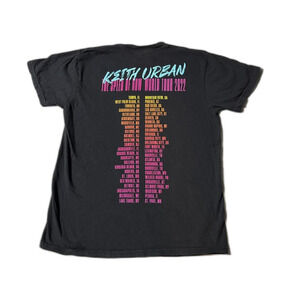 Keith Urban, "The speed of now world tour 2022" with Tour cities. Band shirt, black, comfort colors, 100% cotton, size Medium. Great for festivals, going out, work or casual wear.