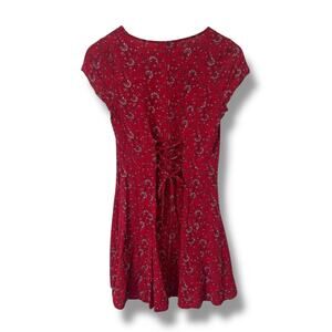 Band of Gypsies 90s Y2K Look Mini Dress Lace Up Back Red Paisley Floral XS