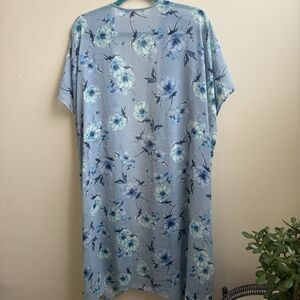 Band of Gypsies Open Front Long Kimono Cardigan Light Blue Floral Sheer