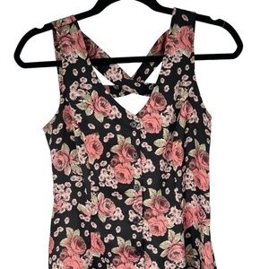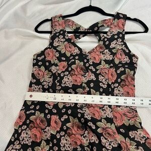 Band of Gypsies Black Pink Floral 90s Style Mini Dress. Size extra small with measurements in the pictures. Gently used condition with no rips or stains.