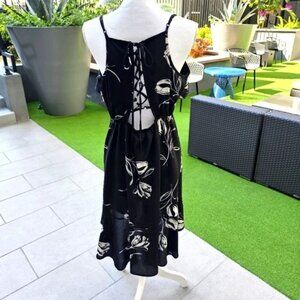 Band of Gypsies ✦ Black White Floral ✦ High‑Low Ruffle Lace‑Up Midi Dress L