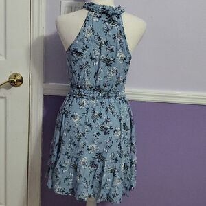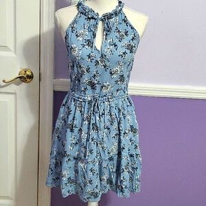 Band of Gypsies Blue Floral Boho Romantic Ruffly Tiered Mini Dress