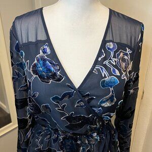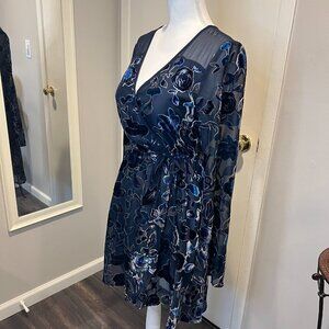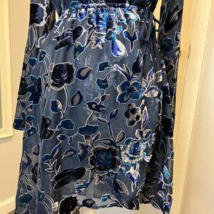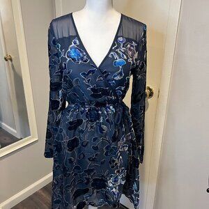 Band of Gypsies Blue Floral Burnout Hi-Low Faux Wrap Dress, Size Medium