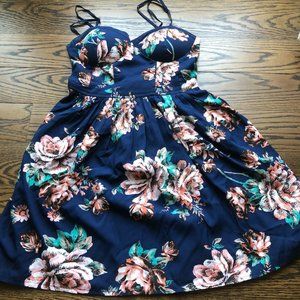 Band of Gypsies Blue Floral Juniors Strap Dress