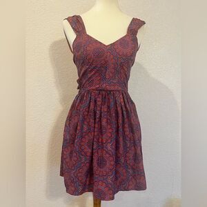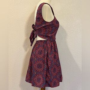 Band of Gypsies Boho Paisley Open Tie Back XS Pink Blue Fit Flare Print Dress