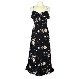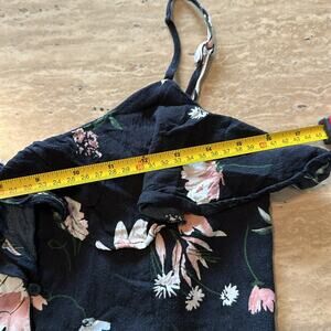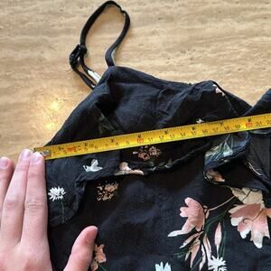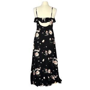 Band of Gypsies Floral Button Front Black Slit Front Girly Pretty Ruffle S12