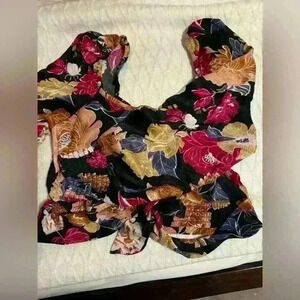 Band Of The Free Crop Top Size Medium Black Berry Floral Back Tie Crossover New