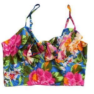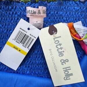 Colorful floral mini dress set. Features vibrant top and skirt. Ideal for sunny days.