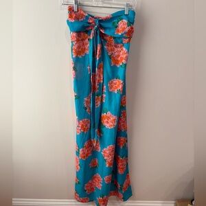 Band of Gypsies Tropical Floral Print dress in XS. Wear it strapless or tie the sash around your neck and wear it as a halter dress. Ruched bust, elastic, and smocking of the back help fit your bust better. Maxi length. Not lined. Great condition.