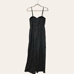 Band of Gypsies Jumpsuit Black White Polka Dot Wide Leg Smocked Back Size S