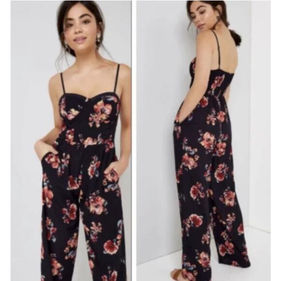BBand of Gypsies Jumpsuit Womens Small Floral Boho Sexy Rockstar Whimsical Jumpsuit Adjustable Straps