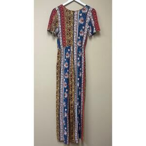 Band of Gypsies Orange Multicolor Floral Paisley Wide Leg Jumpsuit Size S