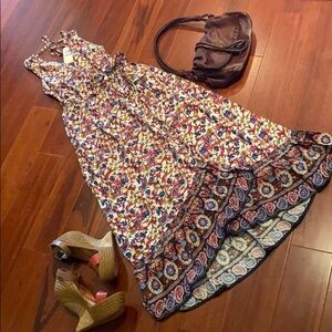Beautiful New Band of Gypsies Paisley Floral Faux wrap dress. This dress features pockets, tie back, and a comfortable elastic waist!
