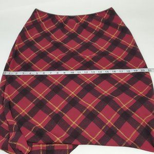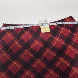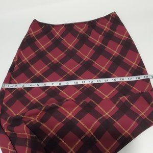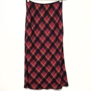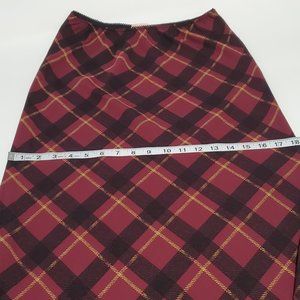 Band of Gypsies Trend Plaid Midi Skirt Plum Red Stretch Waist Skirt Sizes Unlined.