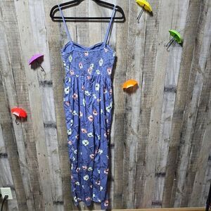 Details: adjustable spaghetti straps, front pockets, lightweight, smocked upper back, flare Palazzo leg, built in bra padding