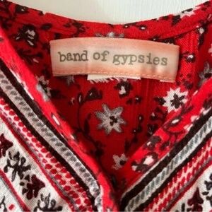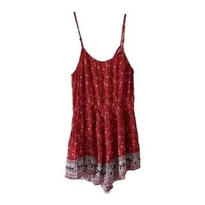 Band of Gypsies | Red Boho Mixed Floral V-Neck Tassel Romper, Medium