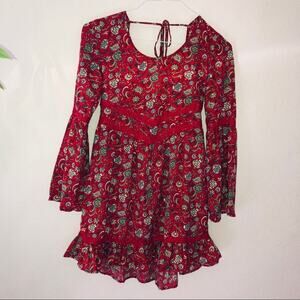 Band of Gypsies Red Lace Bell sleeve Mini Dress Size XS Floral Print