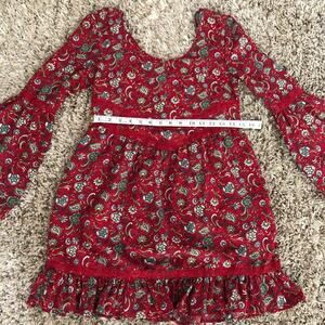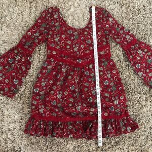 Band of Gypsies Red Lace Bell sleeves Mini Dress Size XSmall. Bohemian floral print. Tie back. Sips over head. 100% Polyester. Please see the photos for measurements. Thank you so much for looking!!