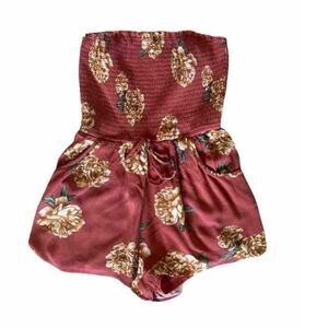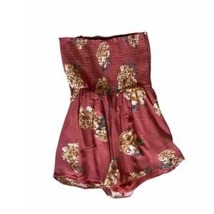 Band of Gypsies (S) Floral Romper Shorts Women’s Size Small Coral Boho Pockets