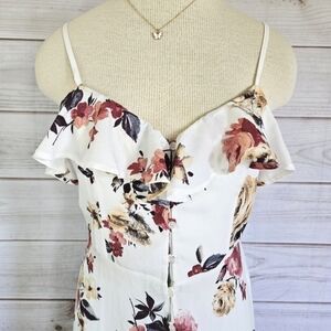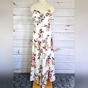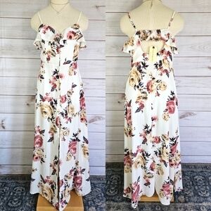Band of Gypsies Semi Sheer Button Down Maxi Dress in White Floral Sz Large NWT
