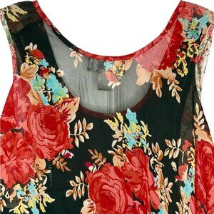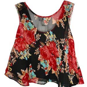 Band of Gypsies Sheer Floral Chiffon Top - Black/Red - S