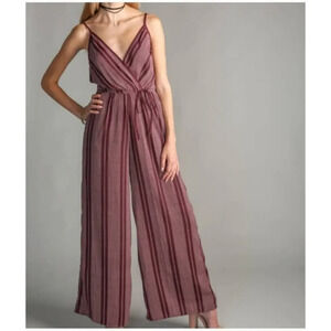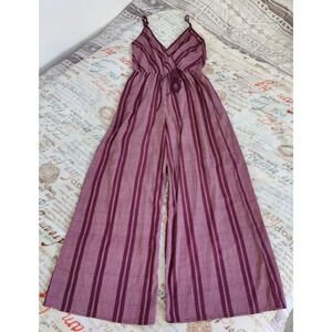 Band of Gypsies Striped Wide Leg Jumpsuit Small Burgundy Sleeveless Boho Purple