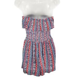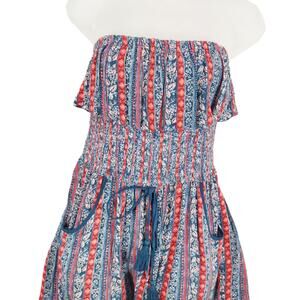 Band of Gypsies Sz S Off-Shoulder One-Piece Romper Shorts Boho Smocked Tassel