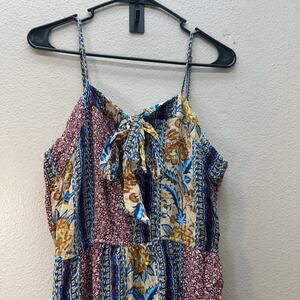 Band of Gypsies Tie Front Smocked Boho Print Floral Dress Maxi Summer Festival indie bohemian mixed media patchwork print sundress