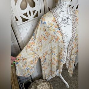 Band of Gypsies Womens Ladies Cream Floral Kimono Duster Coverup Size Small XS
