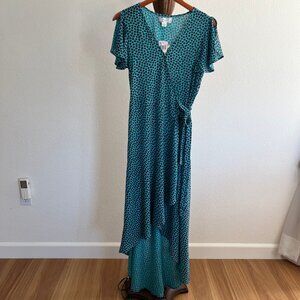 Band of Gypsies Women's Size M Teal/Black Martinique Floral Maxi Wrap Dress
