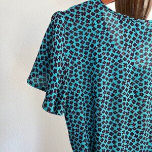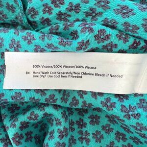 The Band of Gypsies Women's Size M Teal/Black Martinique Floral Maxi Wrap Dress is a flowing and feminine piece made from 100% viscose. It features a crossover V-neck and short slit sleeves for an airy, elegant look. The wrap front with snap closure and self-tie sash at the waist accentuate the figure, while the allover micro-floral print adds a touch of charm. With a high-low hem and a maxi wrap silhouette, this unlined dress is perfect for effortless, bohemian style.