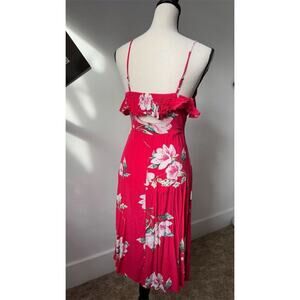 Band of Gypsies Womens XS Floral Ruffle Button Down Red Midi Dress Keyhole Back