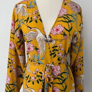 Band of Gypsies Yellow Floral Crane Bird Kimono XS Extra Small