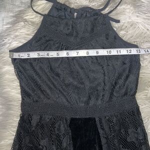 Band of Gypsies | Zoe & Rose Black Velvet Romper Keyhole Lace Overlay sz M Boho
