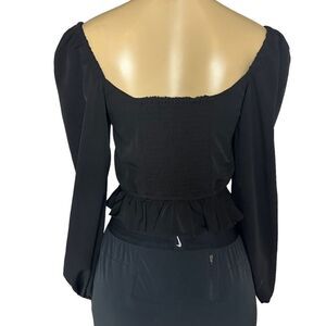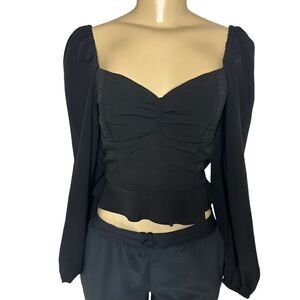 Band of Gypsies balloon long sleeve black crop peasant sweetheart boho top small