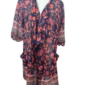 Band of Gypsies orange and blue open front flowy kimono size XS