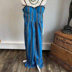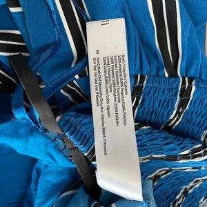 Built in pads in bra area. Has black spaghetti straps, but they could be tucked in for a strapless look.