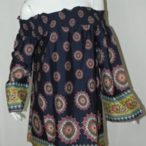 New Band of Gypsies Zoe & Rose Mini Dress Blue Floral Paisley Off The Shoulder Bell Sleeves Boho Chic Festival Dress