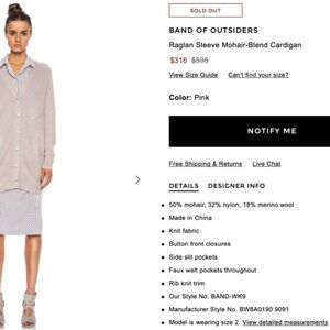 Band of Outsiders Mauve Brown Mohair Cardigan sz small