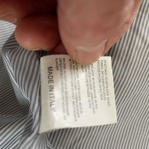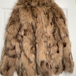 Woman’s Italian size 1 or US Small to Medium Band of Outsiders blue fox fur bomber in excellent condition and very rare. The jacket is from there Boy line and has multiple colors like beige and dark brown and caramel. The jacket has 4 military style buttons for closure and has the typical Band of Outsiders pinstripe blue lining with 2 hand pockets on either side.