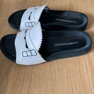 Band of Outsides Slides - White Leather, Clean Insole& Clean Bottoms