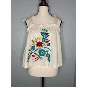 Off white floral embroidered tank top