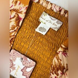 Accents: keyhole back, v neck front, short length, peasant sleeves, smoked back