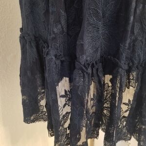 Band of gypsies Halter Lace Overlaid Fit Flare Dress Blue