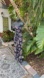 this pretty jumpsuit is a white and pinky toe hibiscus on a navy blue background. The fabric is the light airy rayon That bust has a smocked back that allows for a stretch up to 20 inches pit to pit and there is a rubber ice strip to help hold it in place. Pants are cropped at a 27 inch length in excellent condition.