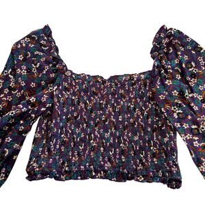 Band of the Free Agathe Purple Boho Floral Print Smocked Long Sleeve Top Medium