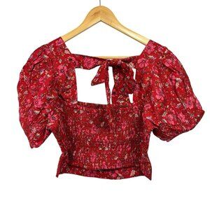 Band of the Free BOG Crop Top Womens Large Red Floral Boho Tie Back Smocked NWT